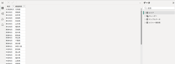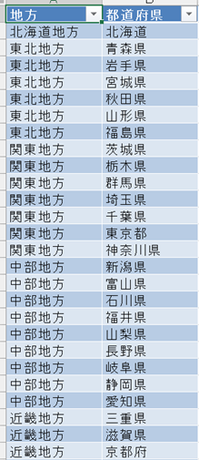 今回は、簡単な都道府県と地域カテゴリのデータを用意しました。