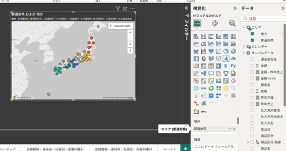 このように、売上が多い地域がぱっと見て分かるようになりました。