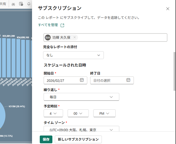 ■Power BIのサブスクリプション(レポートのメール配信)
